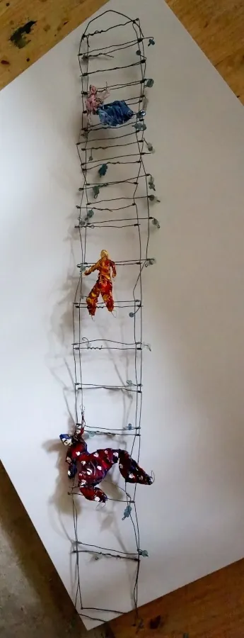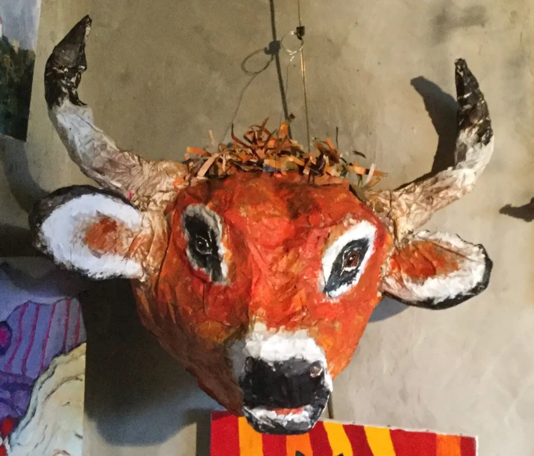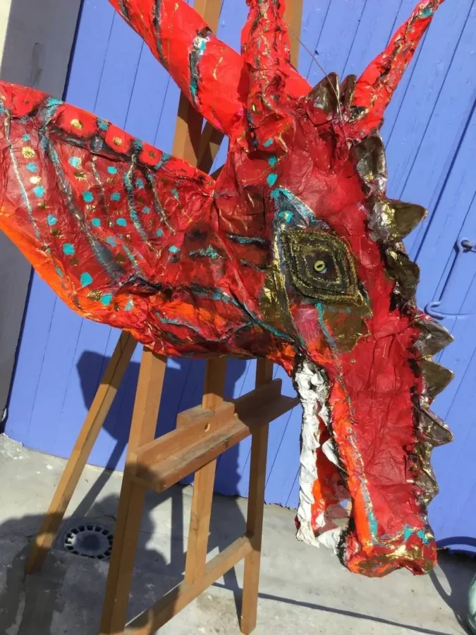 Expérimentations aux allures de carnaval et de créatures folkloriques. La créativité de Nadine ne se limite pas à la peinture.