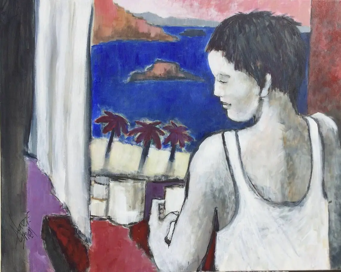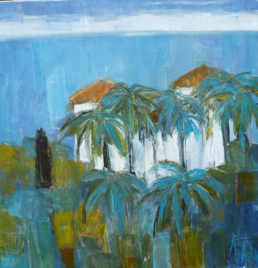 L’acrylique sèche vite et garde des couches nettes ; l’huile fond les transitions. Ici, les deux recherchent une même douceur lumineuse. Nadine Salem réussit à maîtriser l’acrylique pour un rendu proche de la peinture à l’huile.